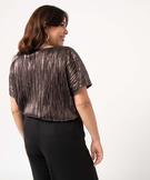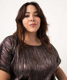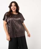 Tee-shirt femme grande taille loose en maille plissée scintillante bronze