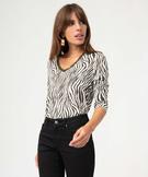 Le tee-shirt à manches longues s’affiche cette saison dans une matière ultra fluide au confort unique et orné de jolis motifs fleuris. Un tee-shirt femme qui s’adapte parfaitement à votre silhouette en soulignant vos courbes avec beaucoup d’élégance. Autre atout, il possède un large col en V bordé d’une bande de dentelle. Un tee-shirt imprimé facile à associer avec tous les bas du dressing, avec une jupe pour une allure ultra féminine ou avec un jean pour un look plus casual.
