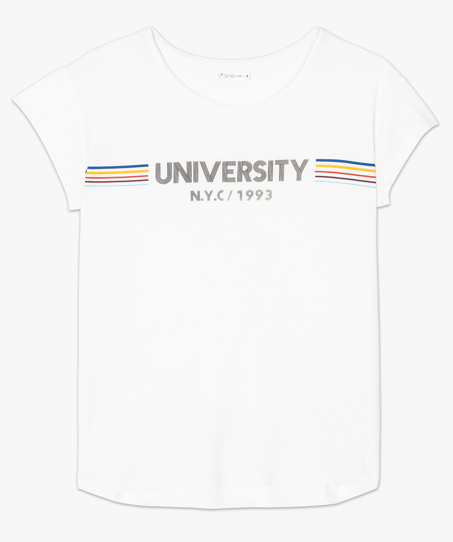 Tee-shirt femme loose à manches courtes avec inscription rose chine