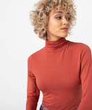 Tee-shirt femme uni avec col roulé et manches longues[MISSING] brique