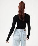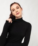Tee-shirt femme uni avec col roulé et manches longues noir