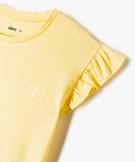 Le tee-shirt à manches courtes prend une allure glamour cette saison avec ses petits volants sur les manches. Confectionné dans un coton flammé, ce tee-shirt fille est orné d’un charmant motif pailleté sur la poitrine. Un basique revisité par Gémo à glisser dans le vestiaire des filles et à assortir avec tous les bas. Col rond.