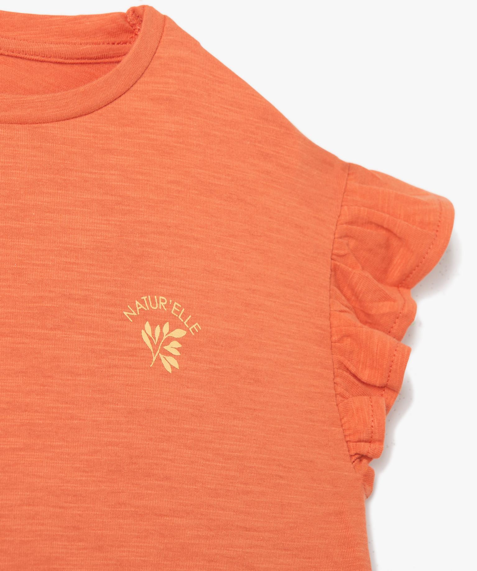 Le tee-shirt à manches courtes prend une allure glamour cette saison avec ses petits volants sur les manches. Confectionné dans un coton flammé, ce tee-shirt fille est orné d’un charmant motif pailleté sur la poitrine. Un basique revisité par Gémo à glisser dans le vestiaire des filles et à assortir avec tous les bas. Col rond.