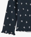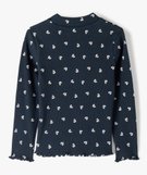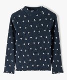 Tee-shirt fille à manches longues et col cheminé motif fleuri noir chine