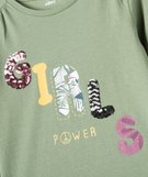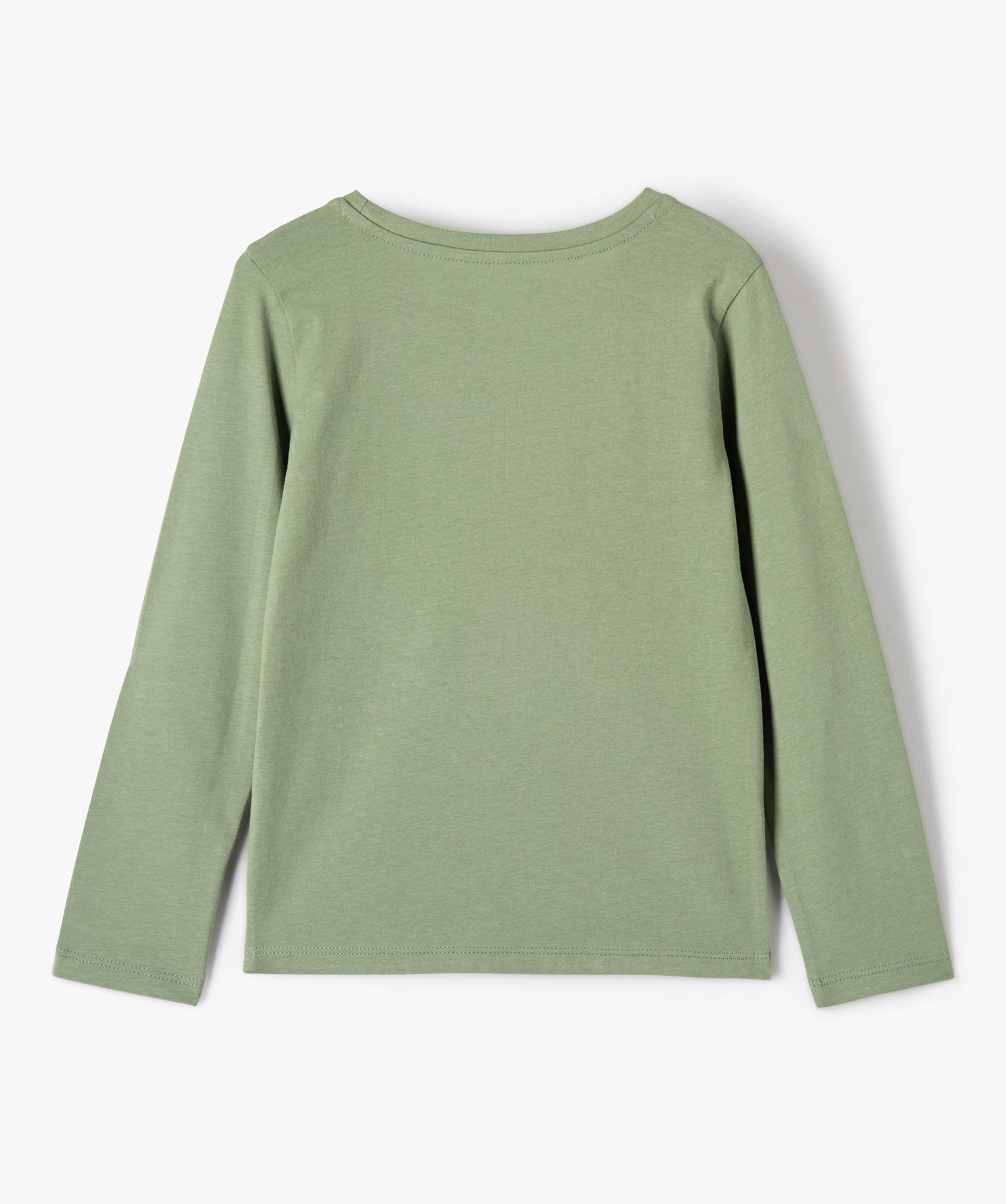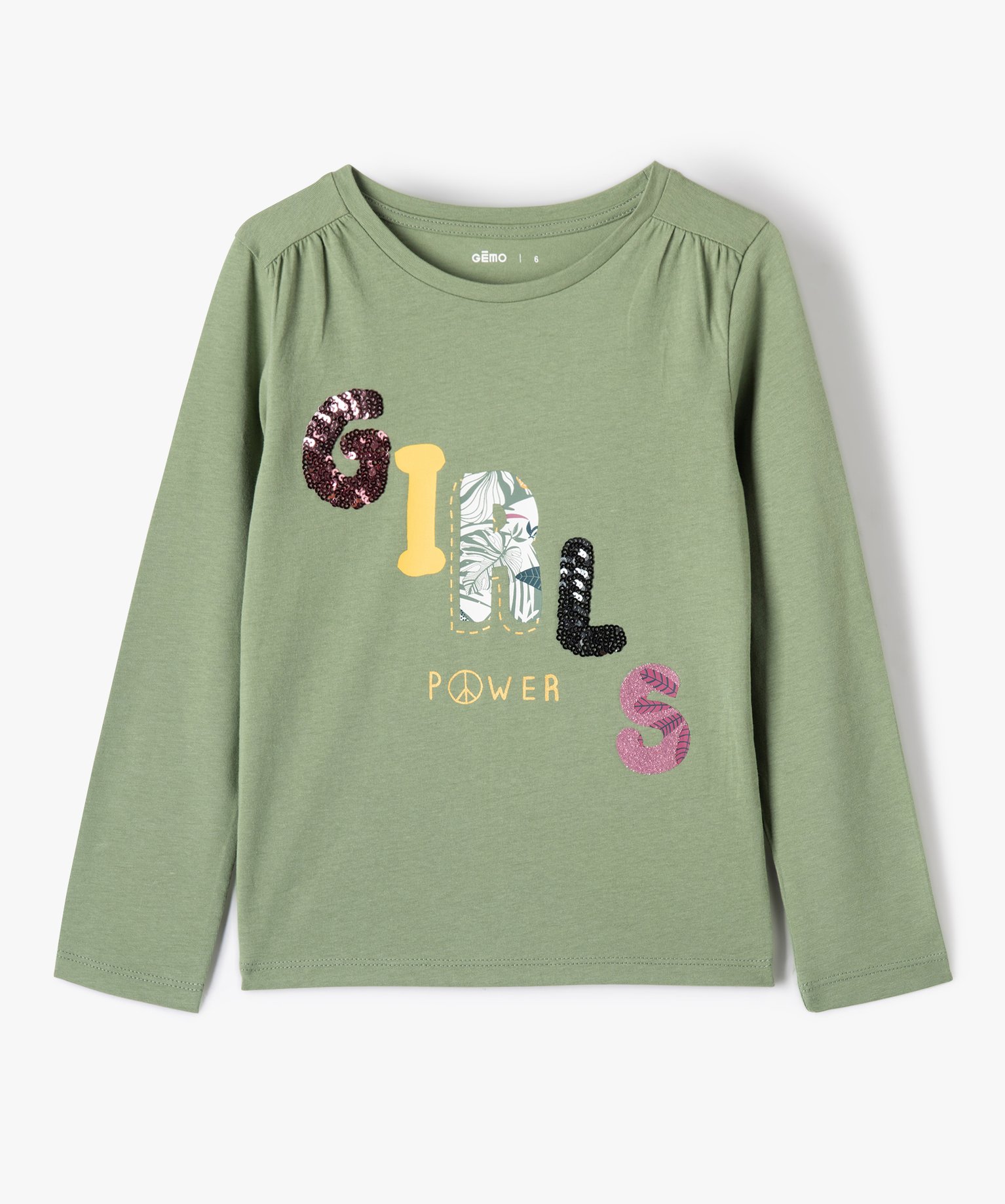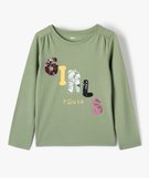 Un tee-shirt fille à manches longues qui accompagnera tous les bas de votre enfant : jean, pantalon, short ou jupe ! Avec son motif qui mixe sequins, jungle et détails dorés, le tee-shirt assure une belle note de fantaisie et de brillance au vestiaire de votre enfant. Le tee-shirt affiche de petites fronces sur le devant des épaules pour plus de relief. Base droite, ourlet surpiqué. Dos uni.