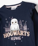Tee-shirt fille à manches longues imprimé Hedwige - Harry Potter noir chine