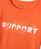 Tee-shirt fille coupe courte avec message sur le buste orange