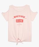 Tee-shirt fille en coton bio avec épaules dénudées rouge fonce