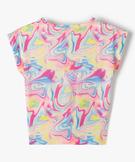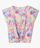 Tee-shirt fille large et noué dans le bas à manches très courtes et multicouleur