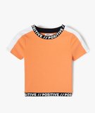 Tee-shirt fille look sport à bandes imprimées orange clair