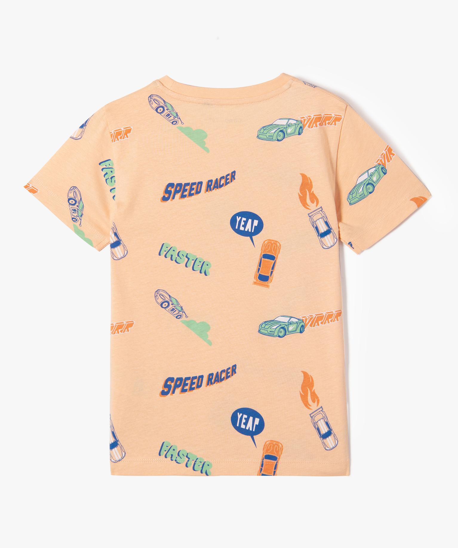 Tee-shirt garçon à manches courtes avec motifs voitures de course orange