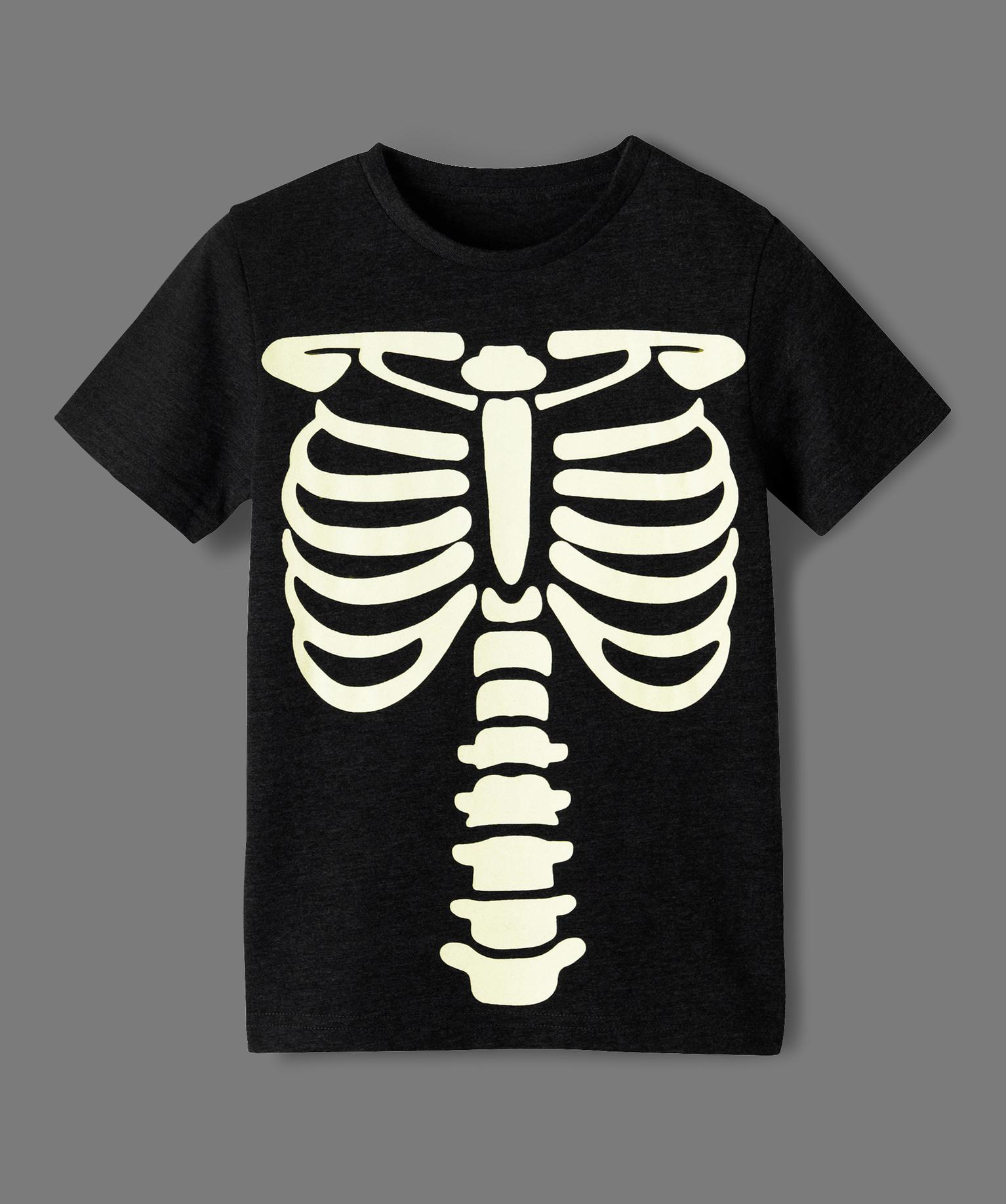 Un tee-shirt rigolo avec son motif squelette qui brille dans le noir ! Un tee-shirt garçon à porter avec un jean regular, des sneakers et une casquette pour une allure casual. Ce tee-shirt, idéal pour Halloween, se porte aussi au quotidien. Col rond en bord-côte. Dos uni. Ourlet surpiqué.