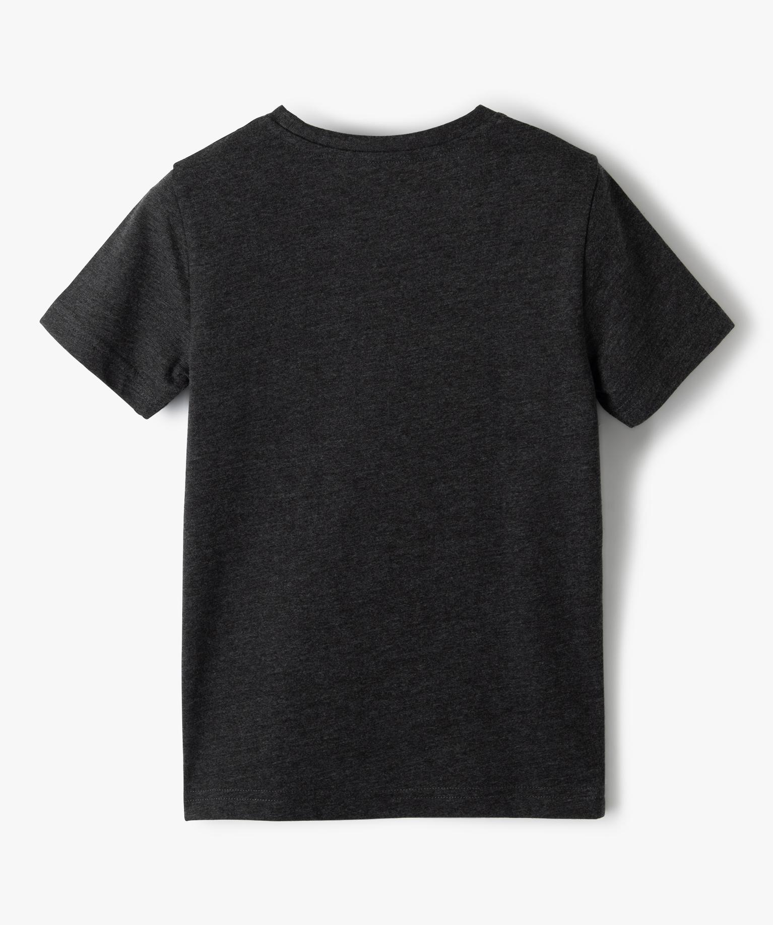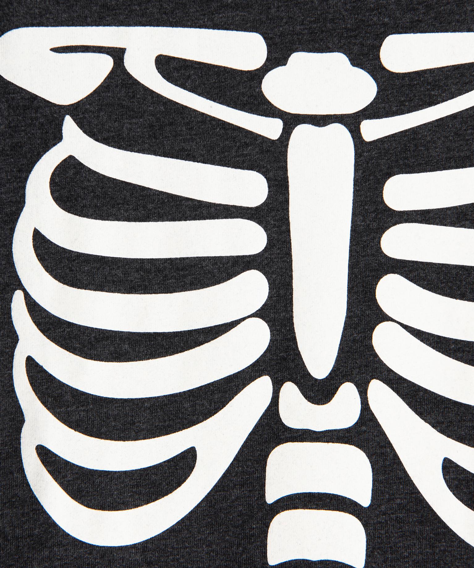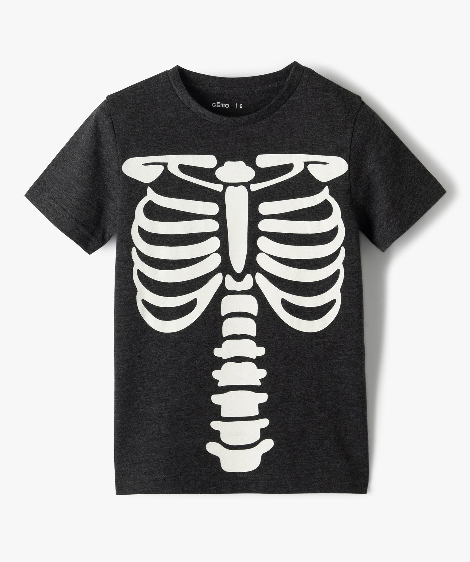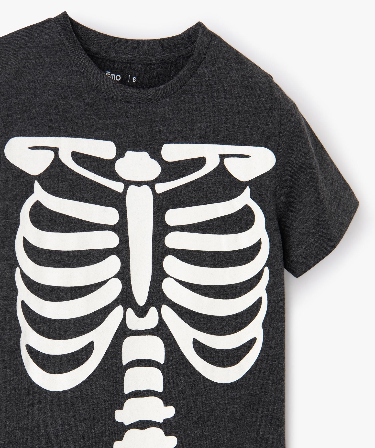 Tee-shirt garçon à manches courtes motif squelette phosphorescent gris chine