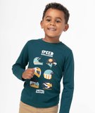 Un tee-shirt à manches longues avec large motif sur l’avant qui fera le bonheur des enfants. Déclinés dans des coloris pétillants, ce tee-shirt garçon à l’esprit sportif dynamisera l’ensemble du vestiaire. Confectionné dans un coton ultra doux, il offre un maximum de confort. Ce tee-shirt imprimé se porte avec un jean ou un pantalon chino. Col rond en bord-côte.