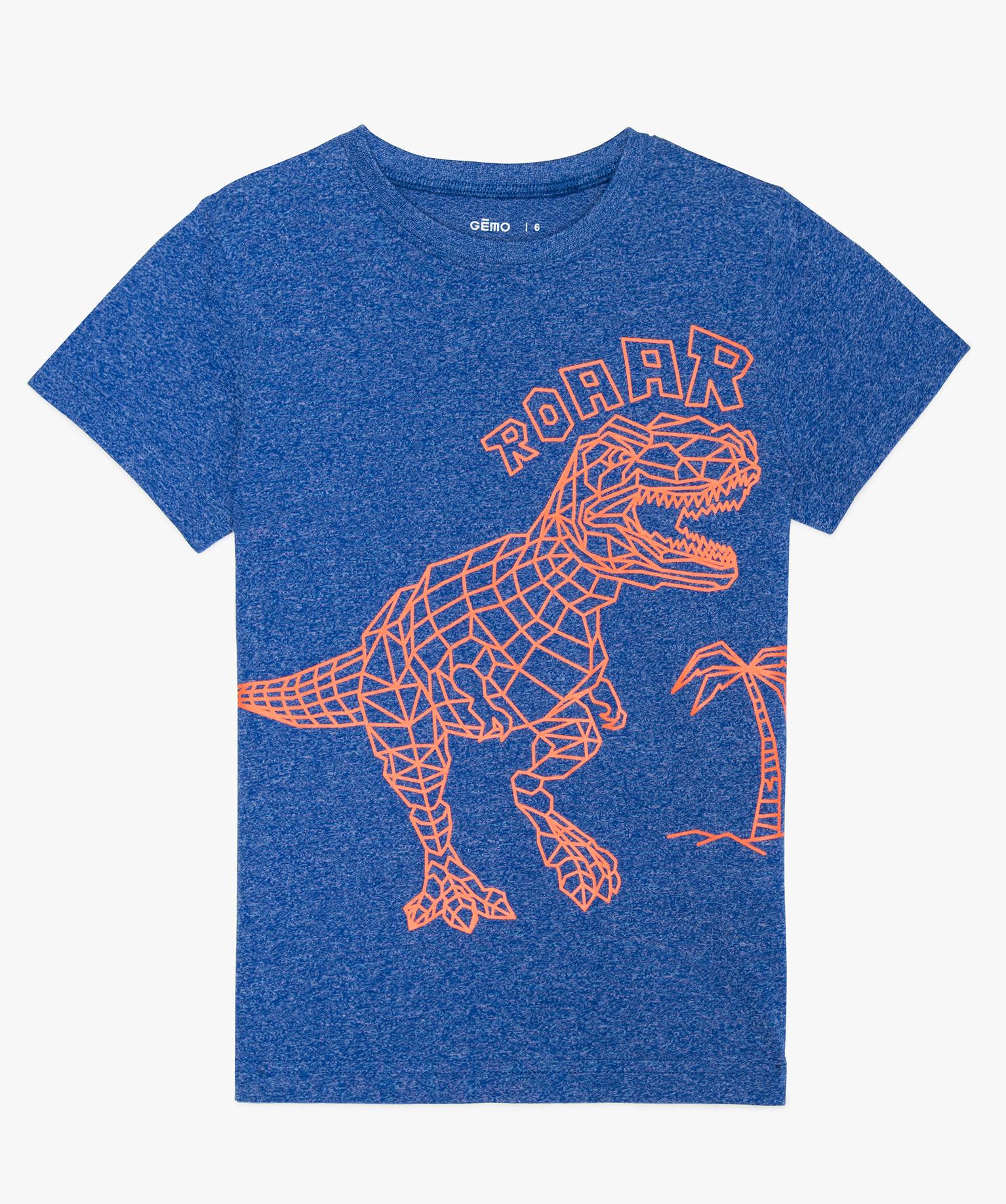 Tee-shirt garçon chiné avec grand motif fluo argente