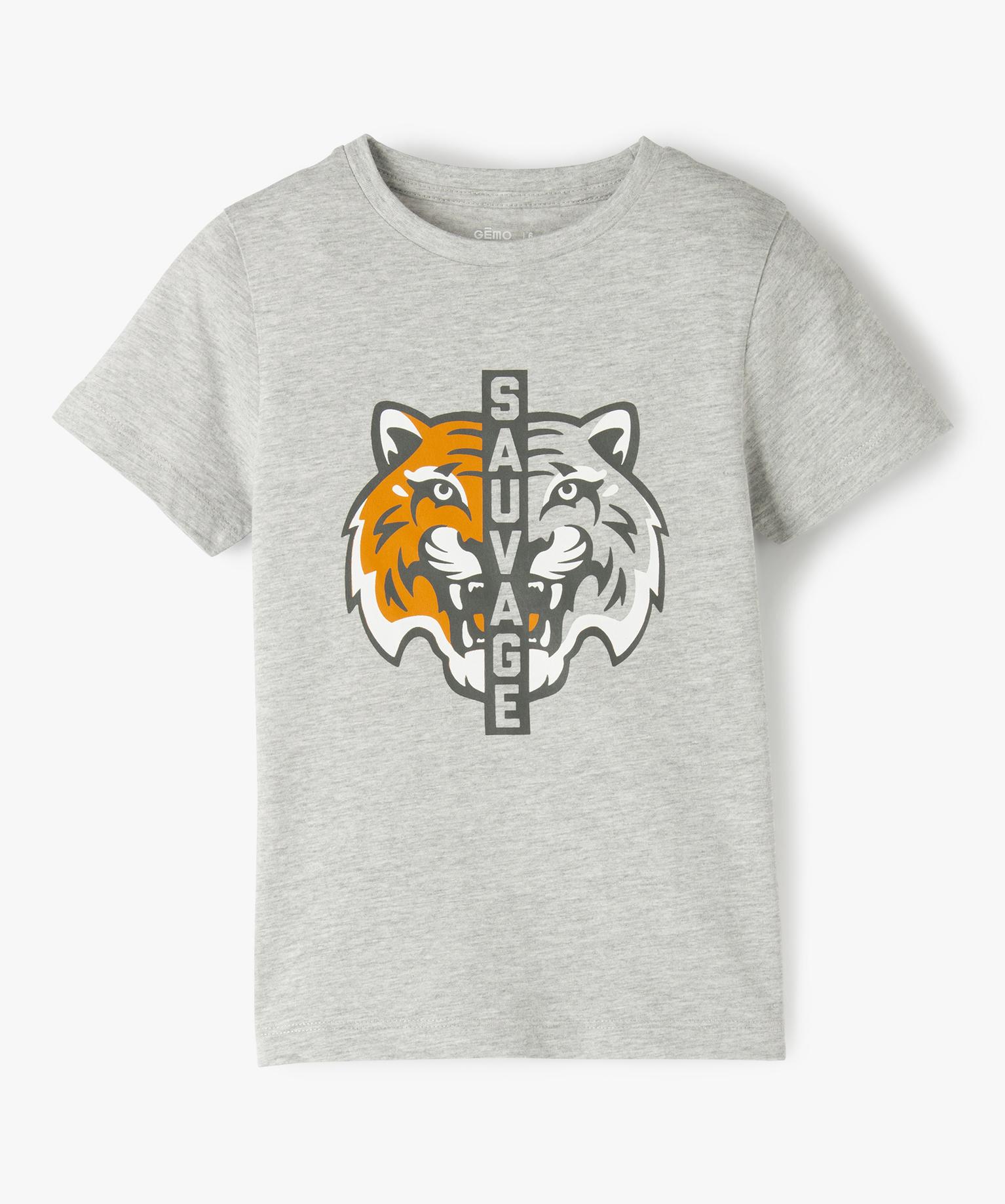 Tee-shirt garçon imprimé à manches courtes gris chine