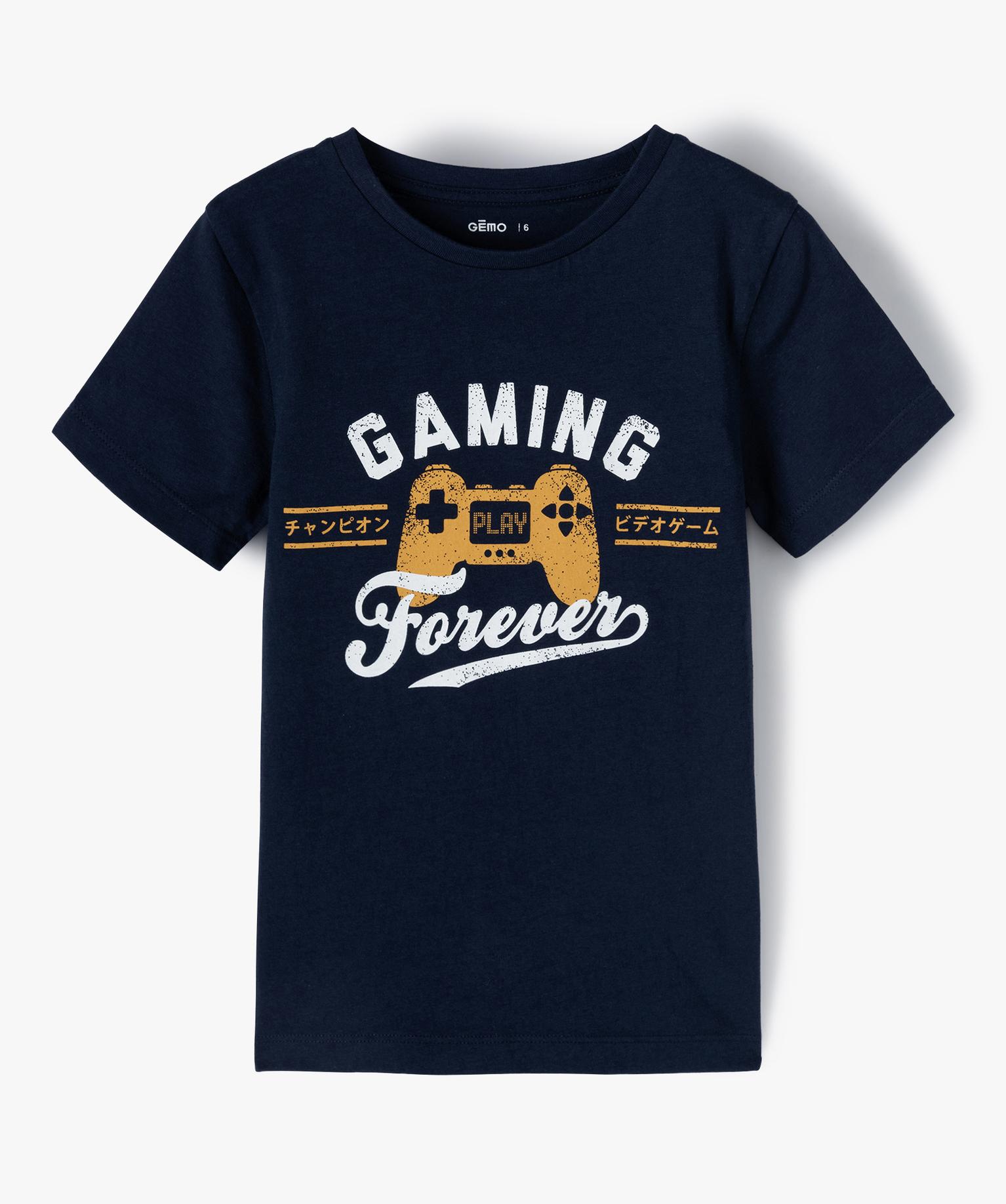Tee-shirt garçon imprimé à manches courtes noir chine