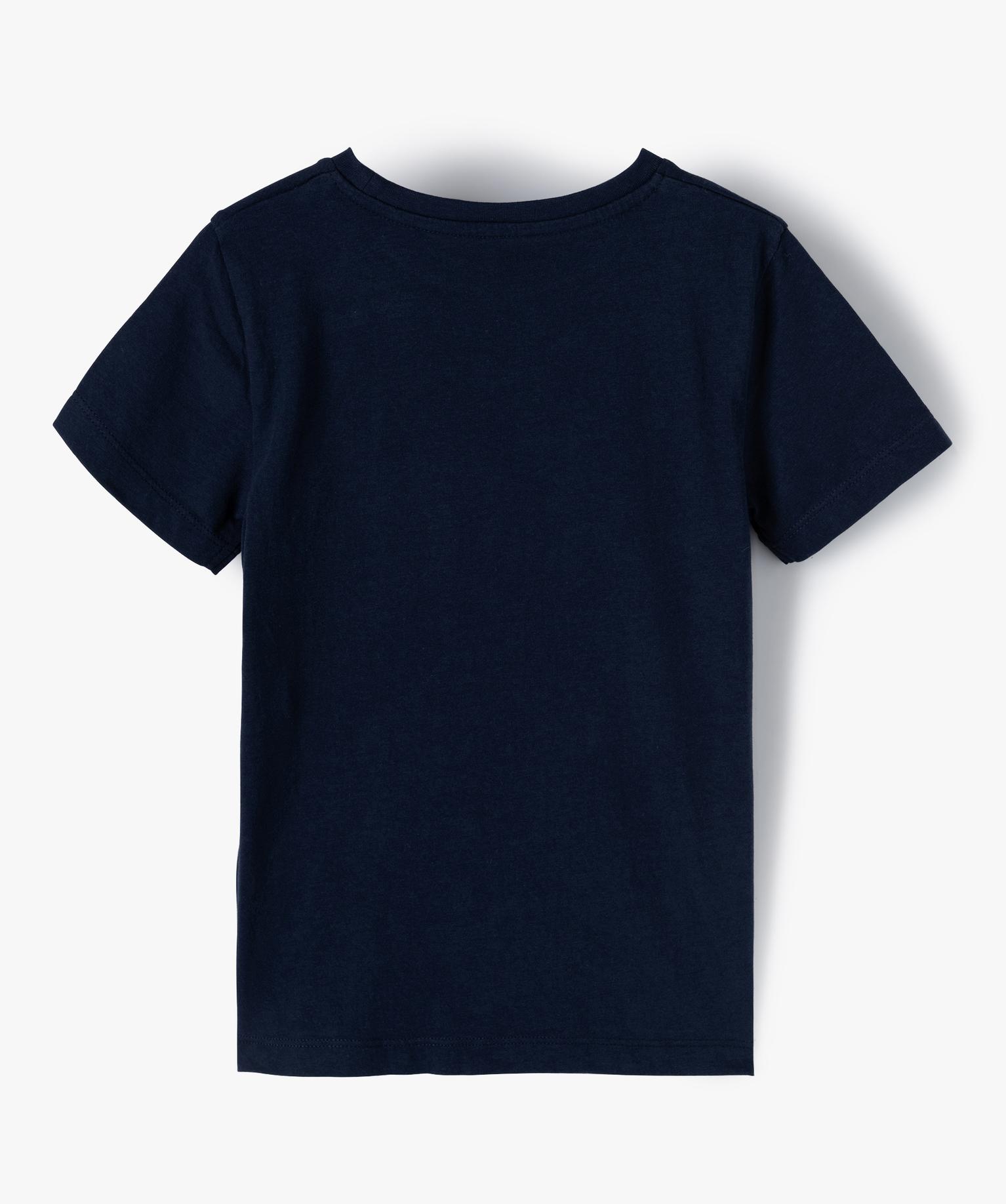 Indispensable en toutes saisons, le tee-shirt à manches courtes se pare d’un large motif pour donner du style aux tenues des petits boys. Un tee-shirt garçon 100% coton biologique pour plus de douceur et un meilleur respect des peaux sensibles. Un essentiel du dressing à porter seul, sous un gilet ou sous un sweat zippé. Col rond en fin bord-côte.