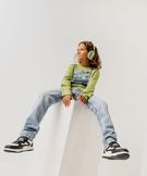 C'est le haut idéal pour toutes les saisons ! On le porte seul avec un pantalon en toile pour les journées plus douces, ou on le glisse sous un gilet ou un sweat lorsque les températures baissent. Associé à une paire de baskets, il compose une tenue parfaite pour l'école et les moments de jeu.