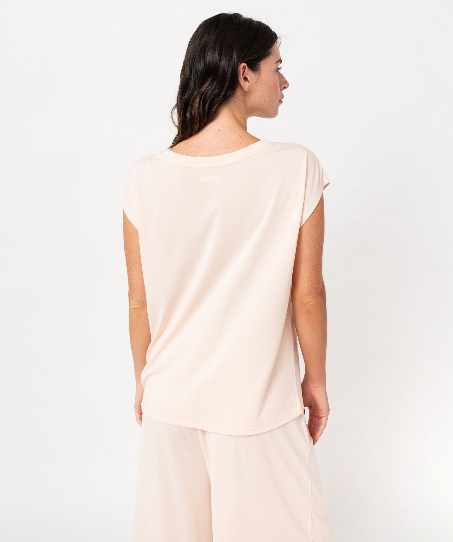 Tee-shirt homewear sans manches avec large col rond femme rose