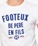 Le football, c'est souvent une histoire de famille ! C'est pourquoi vous allez adorer ce tee-shirt homme décoré du message « Footeux de père en fils ». Ce tee-shirt à manches courtes et col rond s’intégrera parfaitement dans votre dressing casual. 100% coton, il est confortable et facile à vivre. Col rond en bord-côte. Dos uni. Base droite. Pas de coutures latérales. Ourlet surpiqué dans le bas.