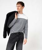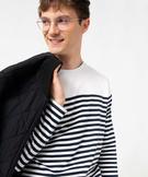Tee-shirt homme à manches longues et rayures marinières blanc