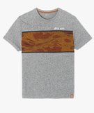 Un tee-shirt pour homme au look original avec son coloris chiné et sa large bande imprimée sur le buste. Une bande représentant des motifs abstraits dans un coloris contrastant, avec inscription brodée. Ce tee-shirt à manches courtes se porte en mode casual avec un jean ou un pantalon en toile unie et des baskets montantes. Petite étiquette cousue dans le bas. Col rond.