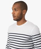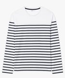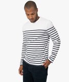 Tee-shirt homme rayé à manches longues et col rond blanc