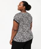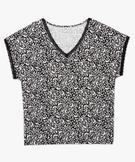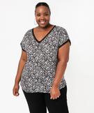 Tee-shirt imprimé à manches courtes à col V femme grande taille noir