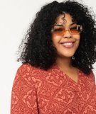 Tee-shirt imprimé à manches longues à col V femme grande taille rouge vif