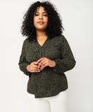Craquez pour cet élégant tee-shirt aux allures de blouse ! Un tee-shirt à manches longues confectionné dans une matière extensible aspect crêpe et doté d’un col V bordé par un large biais. Sous le col et dans le dos, de petites fronces donnent de l’ampleur au modèle. Ce tee-shirt femme grande taille (du 46/48 au 54/56) possède de larges manches resserrées par un élastique aux poignets. Il se porte le jour comme le soir et s’intègre dans les looks chics comme dans les looks décontractés.