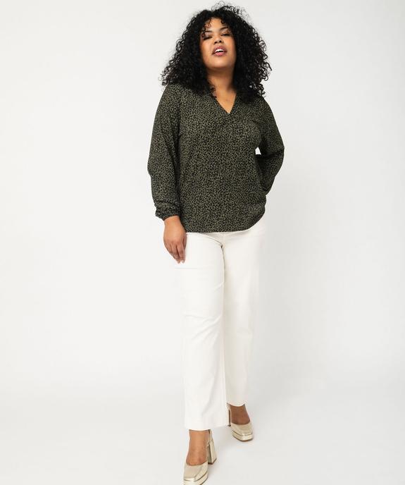 Tee-shirt imprimé à manches longues à col V femme grande taille vert