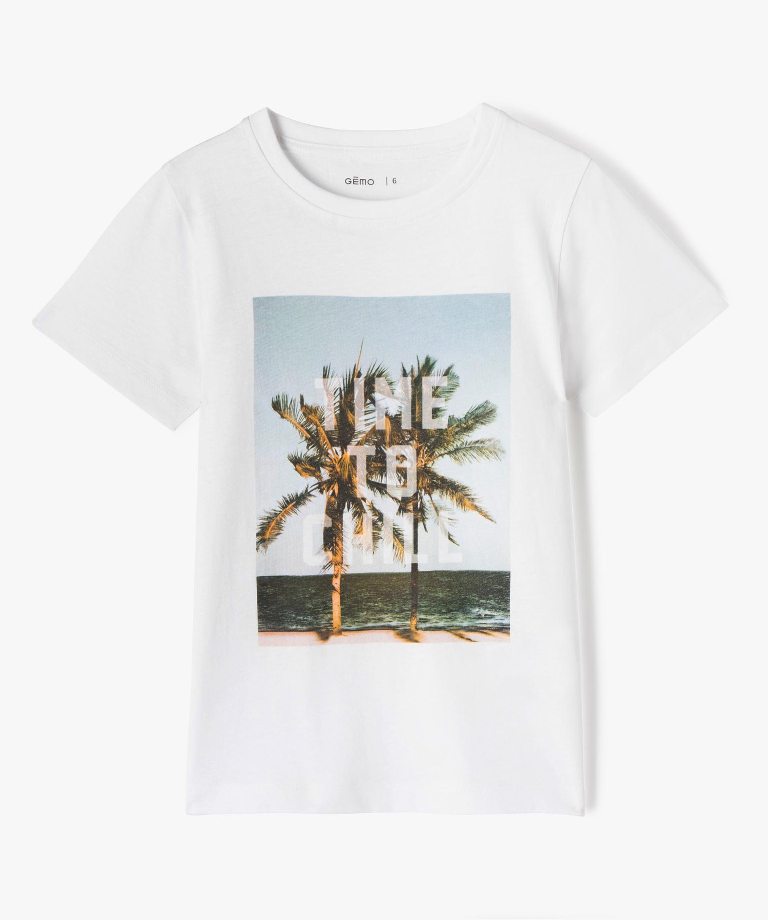 Le haut parfait pour les journées ensoleillées ! Ce tee-shirt garçon est un essentiel de la garde-robe estivale. Avec son col rond classique et ses manches courtes, il est idéal pour profiter du beau temps. Sa coupe droite et sa matière à base de coton le rendent très agréable à porter pour toutes les activités de la journée. C'est une pièce basique qui se distingue des tee-shirts unis par sa touche de fantaisie.