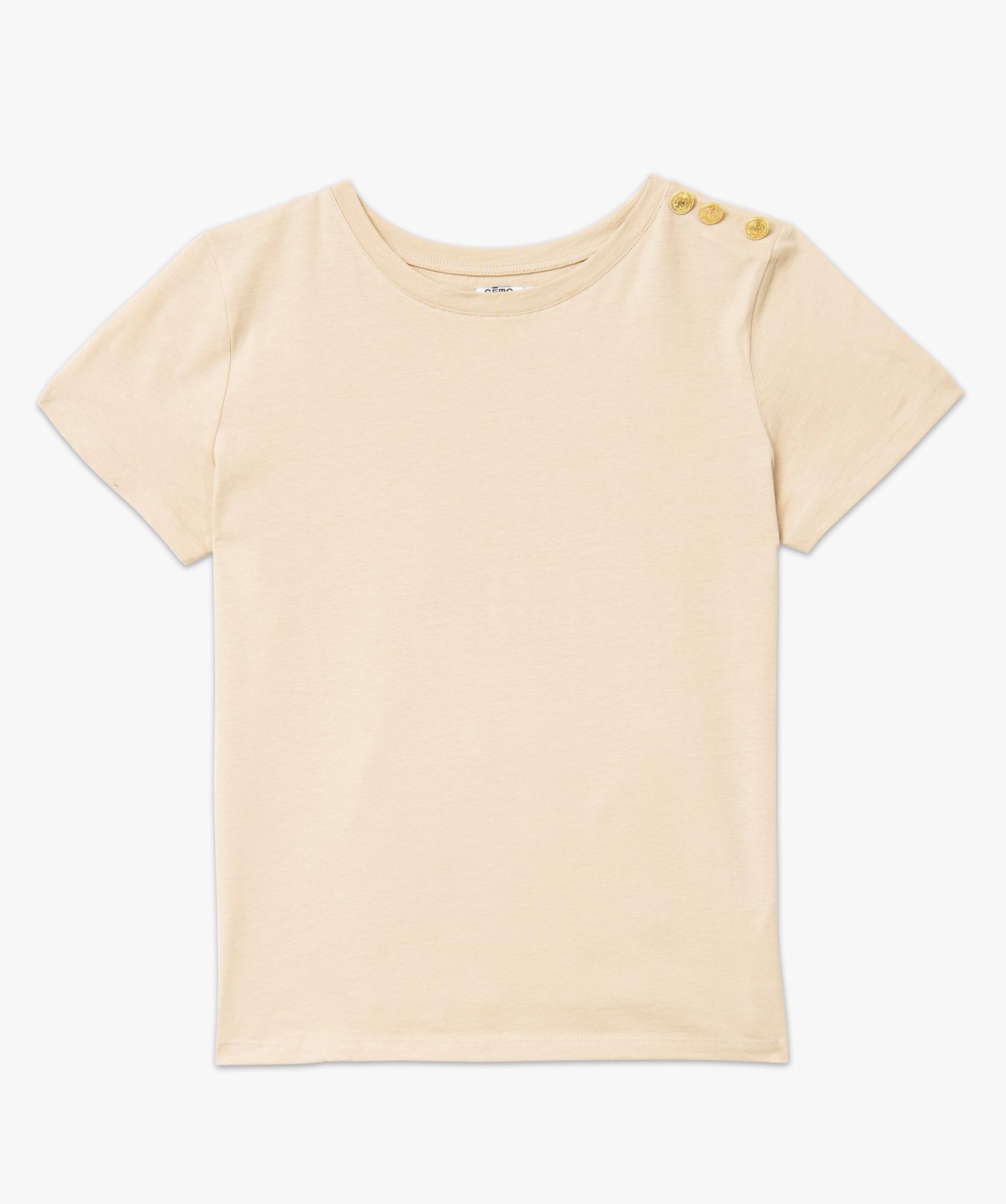Tee-shirt manches courtes à boutons décoratifs femme beige