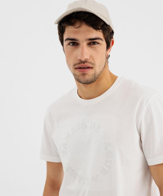 Ce tee-shirt pour homme séduit par son look sobre et classique, twisté par son message brodé sur la poitrine en cercle dans un fil ton sur ton. Le tee-shirt manches courtes est fabriqué en jersey de coton doux, léger et idéal pour la saison. Dos uni. Col en bord-côte.