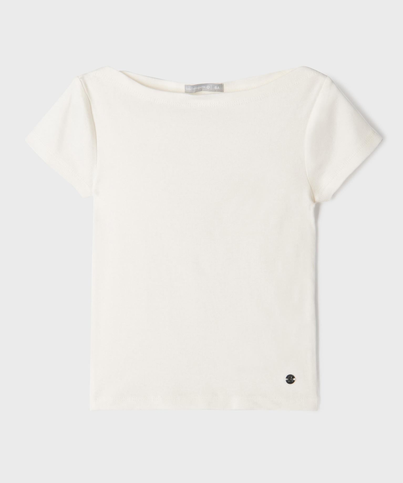 Tee-shirt manches courtes à col bateau fille - LuluCastagnette blanc