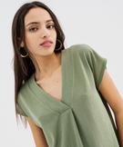 Alliant la légèreté d’un tee-shirt et l’élégance d’une blouse, ce top fluide se distingue par sa touche de fantaisie et son style intemporel. Avec ses manches courtes et sa coupe ample, ce tee-shirt femme offre un confort inégalé tout en mettant en valeur votre silhouette. Son col V, délicatement bordé de biais croisés, et le pli à l’avant ajoutent une note sophistiquée et originale. Confectionnée dans une matière issue de polyester recyclé, affichant un élégant relief, cette blouse unie incarne une mode à la fois chic et responsable, idéale pour varier les styles au quotidien.