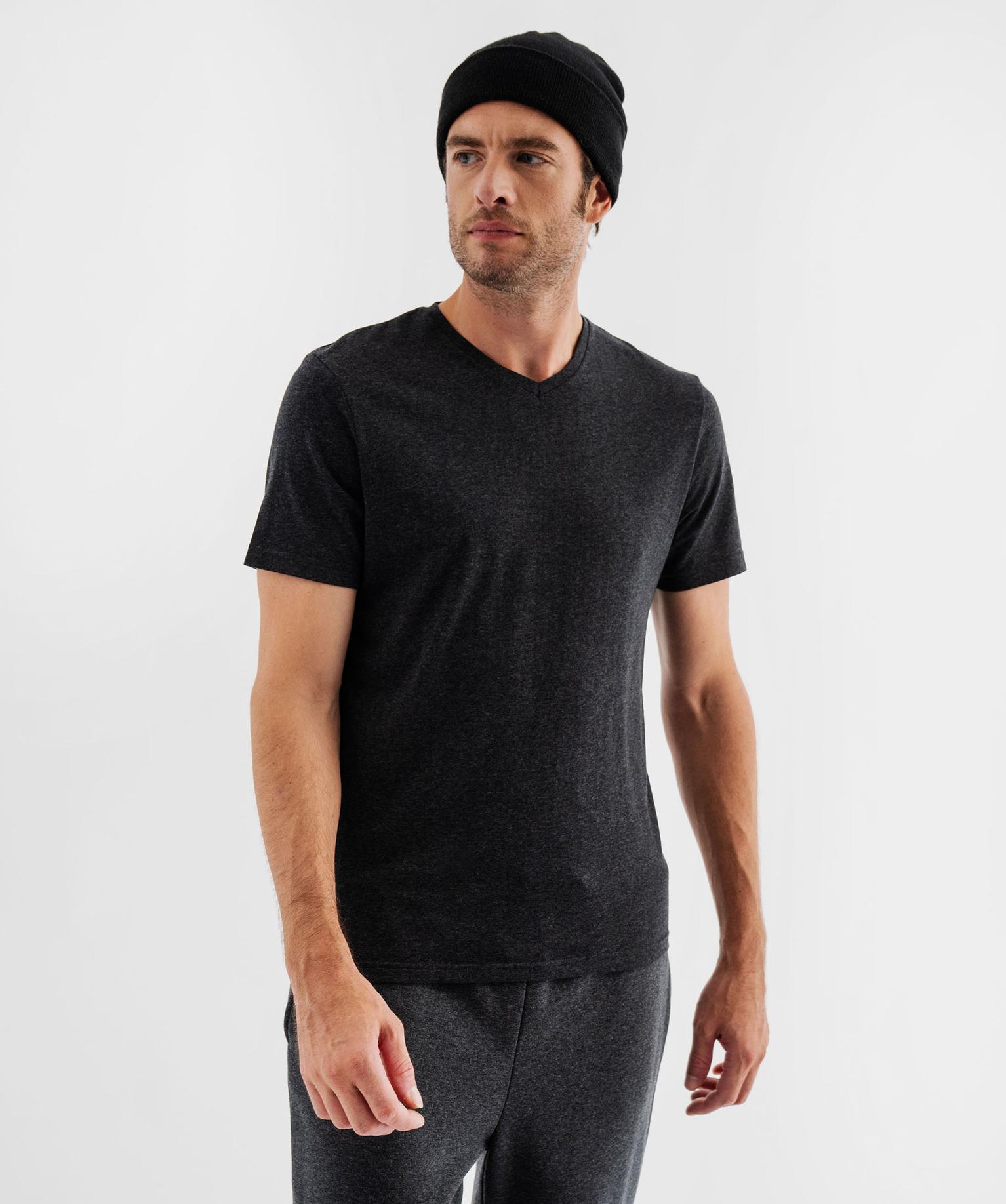 Ce tee-shirt à manches courtes séduit par son col V qui apporte une touche de modernité et d’élégance décontractée. Confectionné dans une matière douce et agréable à porter, ce tee-shirt pour homme s’adapte aussi bien à un look casual avec un jean qu’à une tenue plus habillée sous une veste de costume. Un essentiel du vestiaire masculin à porter toute l’année.