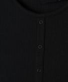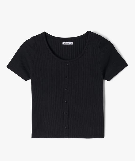 Tee-shirt manches courtes à côtes et faux boutons fille noir