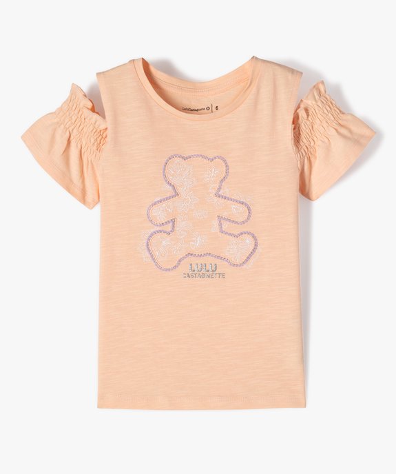 Tee-shirt manches courtes à épaules dénudées fille - LuluCastagnette orange clair