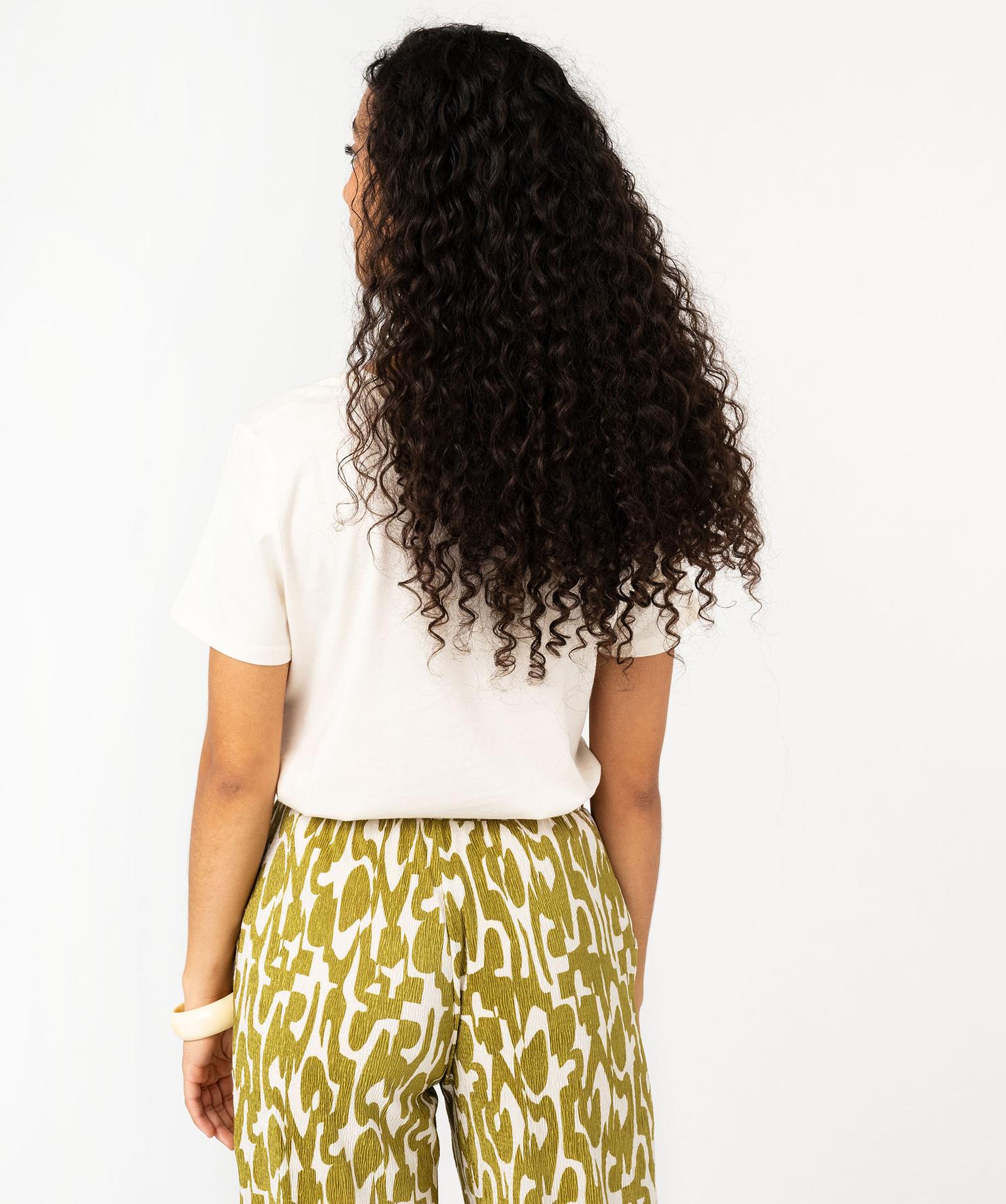 Un très élégant tee-shirt femme, idéal pour profiter du confort d'un basique mais avec une touche de raffinement ! C'est un tee-shirt travaillé avec un très grand motif mis en relief par du velours ras. Le tee-shirt manches courtes, avec sa coupe droite et son col rond, se révèle très facile à porter avec du moulant comme avec du large dans le bas. Dos uni. Col en bord-côte.