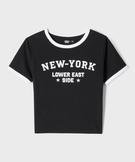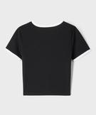 Ce tee-shirt à manches courtes ajoutera une touche tendance à tous les looks de la saison grâce à sa coupe courte ajustée et son message sur le buste. Ce tee-shirt fille arbore de jolies finitions en bord-côte contrastant sur le col et le bord des manches, ajoutant une note sportive à son allure. Un essentiel à porter aussi bien avec un jean qu’avec une jupe patineuse.