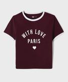 Ce tee-shirt à manches courtes ajoutera une touche tendance à tous les looks de la saison grâce à sa coupe courte ajustée et son message sur le buste. Ce tee-shirt fille arbore de jolies finitions en bord-côte contrastant sur le col et le bord des manches, ajoutant une note sportive à son allure. Un essentiel à porter aussi bien avec un jean qu’avec une jupe patineuse.