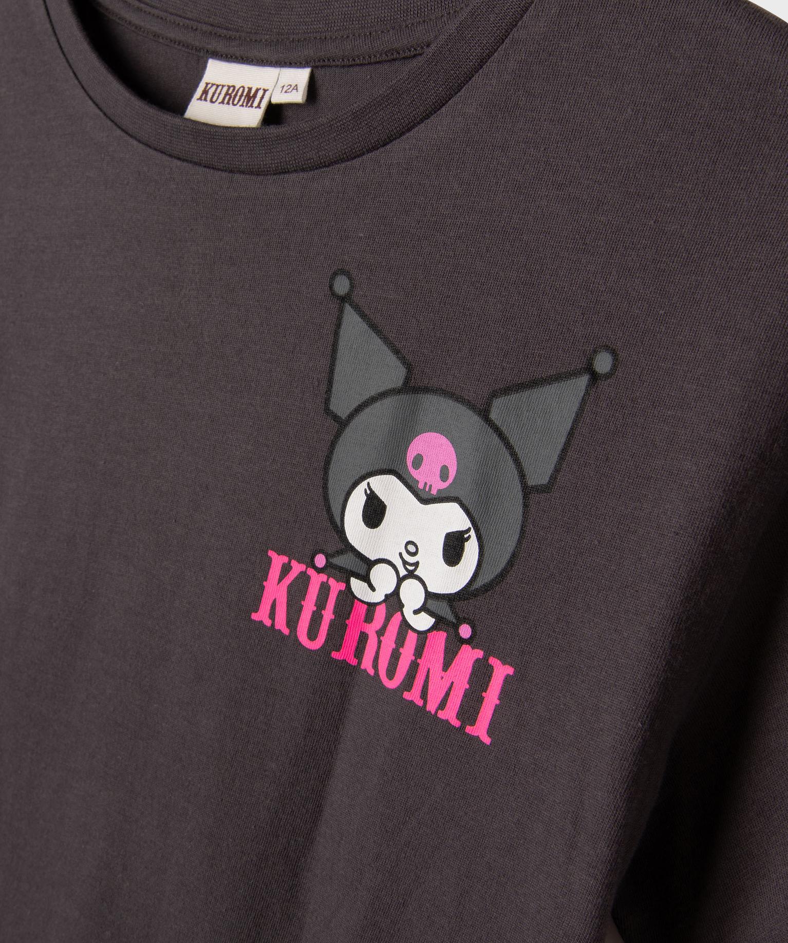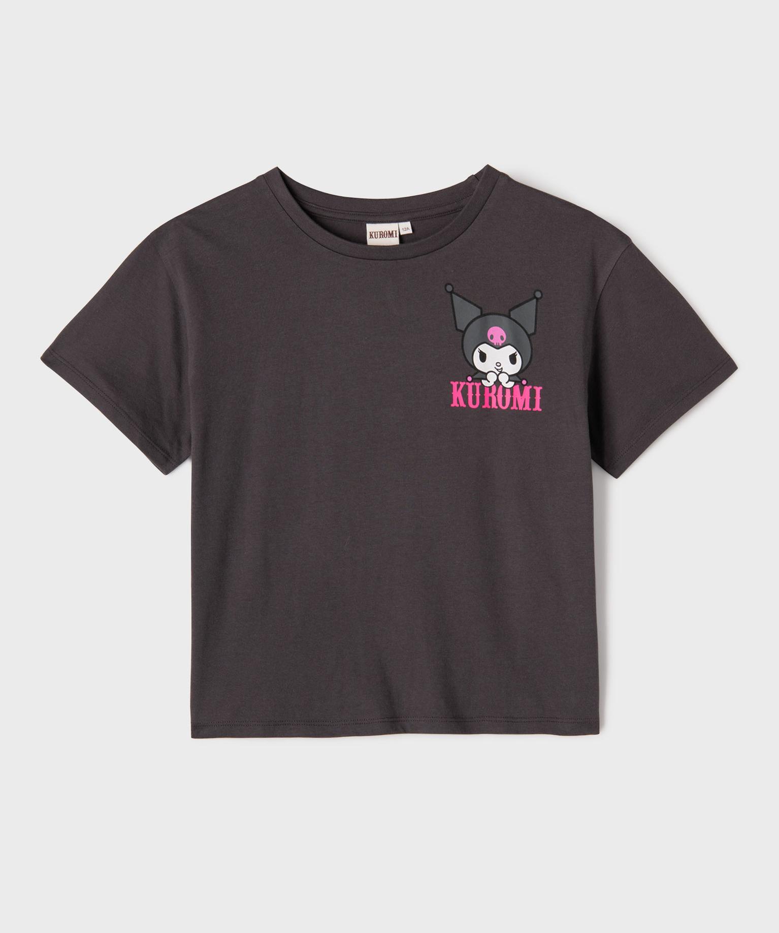 Tee-shirt manches courtes à motif diablotin fille - Kuromi gris