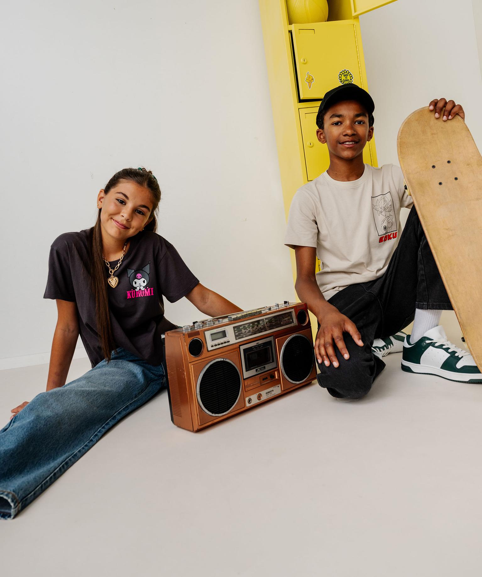 Ce tee-shirt Kuromi va réveiller le petit démon qui sommeille en chaque fille ! Inspiré de l’univers Hello Kitty, ce tee-shirt fille arbore un charmant motif lapin au regard de démon sur la poitrine et un motif XXL dans le dos, le tout boosté par des inscriptions fluo. Un tee-shirt à manches courtes et col rond confectionné en coton et coton recyclé offrant un toucher ultra doux. Associé à une jupe évasée, il assure aux jeunes filles un look rebelle et stylé.