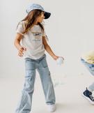 Ce tee-shirt à manches courtes ajoutera une belle touche de fantaisie dans le vestiaire des filles ! Avec son motif estival en relief représentant un sac de plage, il ne laissera aucune enfant indifférente. Ce tee-shirt fille affiche une coupe classique facile à porter et à assortir : droite, col rond en biais, emmanchures classiques. Un tee-shirt à porter avec une jupe courtes et des tennis en toile.