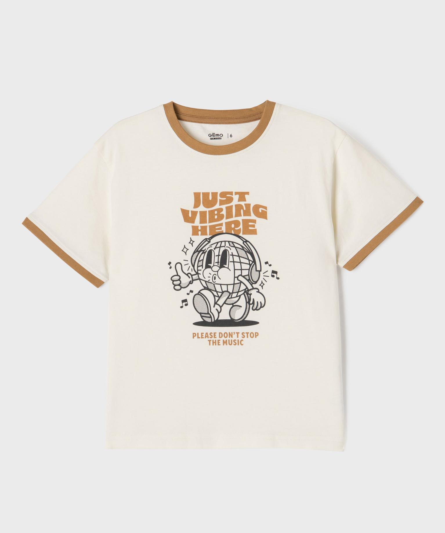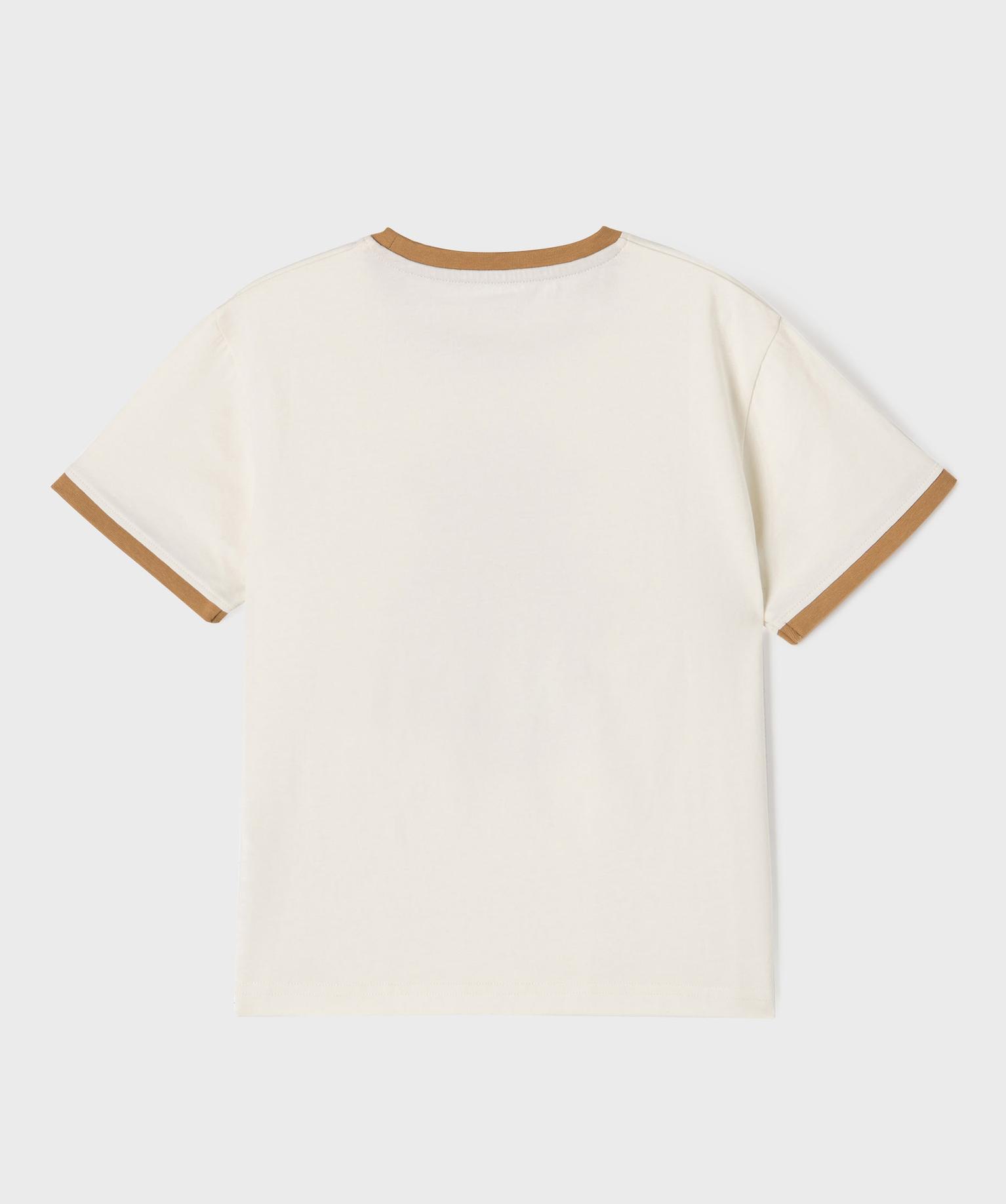 Tee-shirt manches courtes à motif et finitions contrastantes garçon ecru