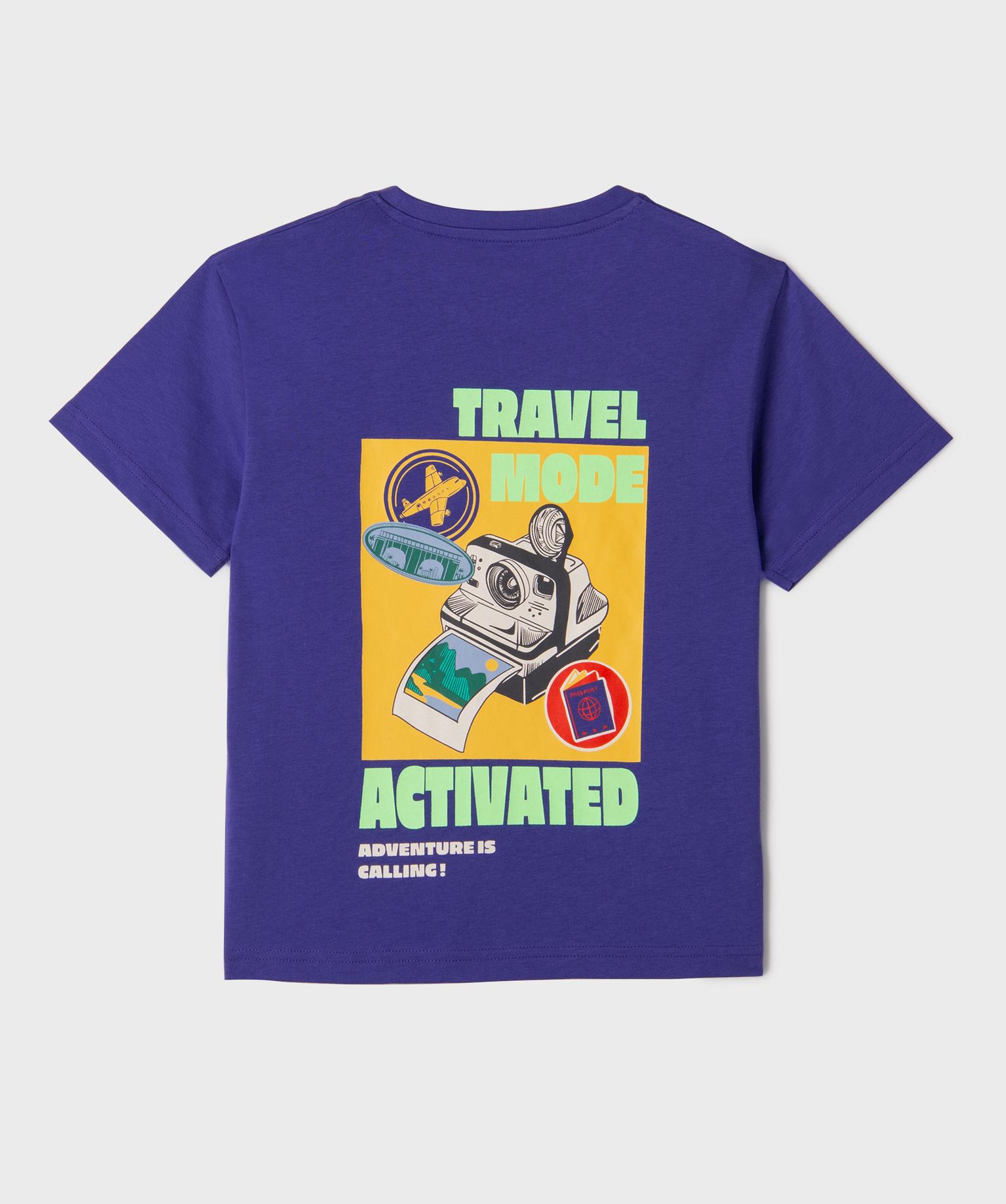 Tee-shirt manches courtes à motif poitrine et dos garçon violet