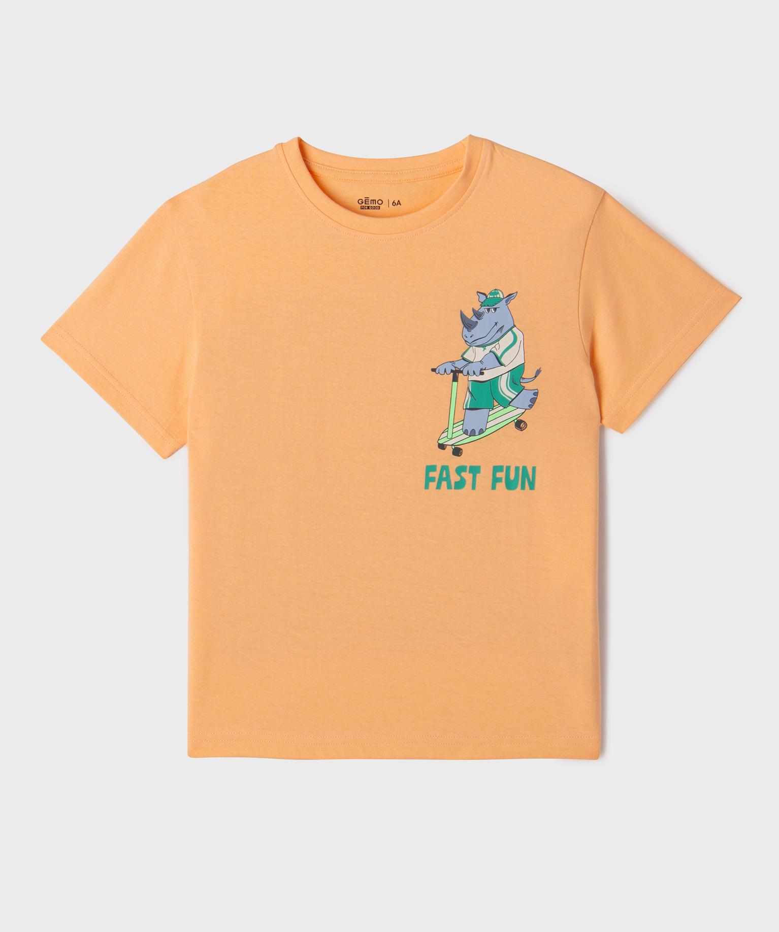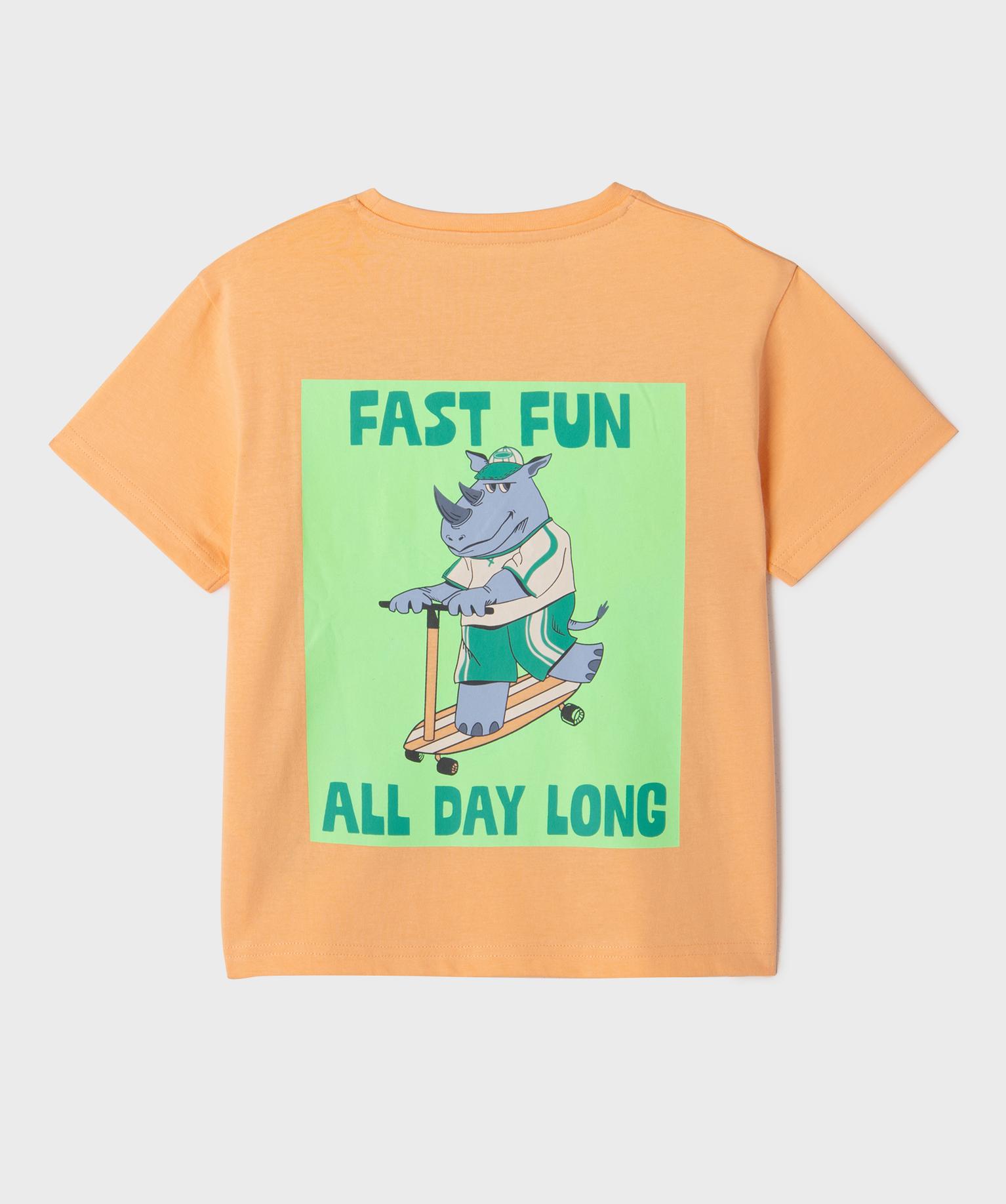 Tee-shirt manches courtes à motif poitrine et dos garçon orange