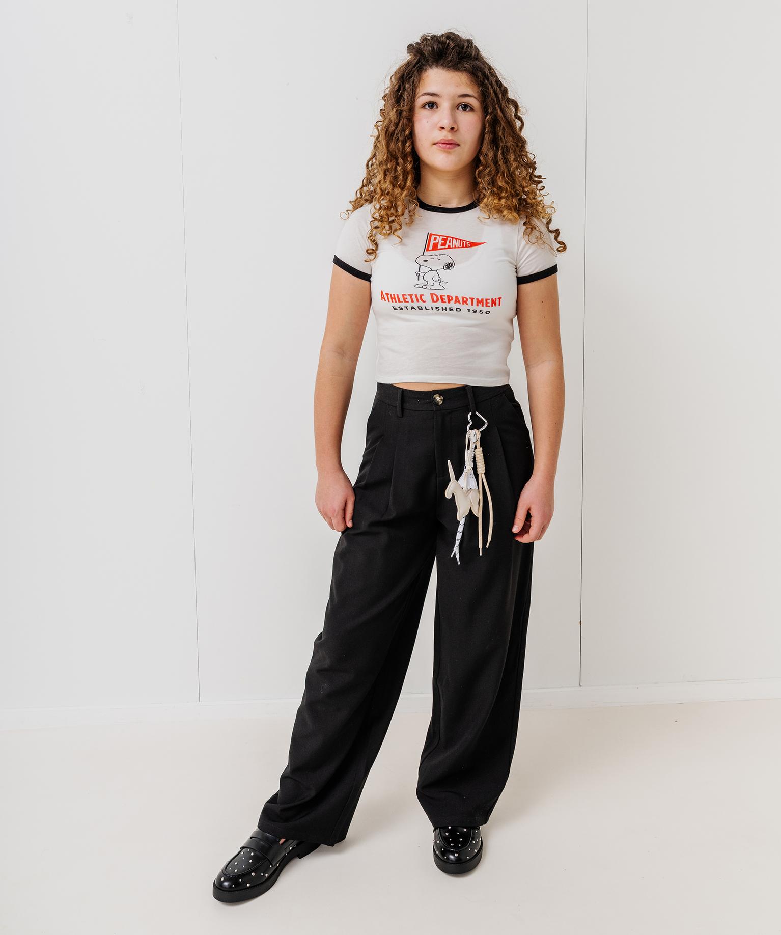 Ce tee-shirt pour fille rend hommage à l’univers vintage de Snoopy. Avec son motif iconique plein de tendresse et ses finitions contrastantes au col et aux manches, il affiche un style rétro irrésistible. Sa coupe ajustée et ses manches courtes en font une pièce facile à porter au quotidien, tant avec une jupe qu'avec un pantalon. Un tee-shirt Snoopy au charme intemporel qui apportera une touche de bonne humeur et de nostalgie aux looks des petites fans du célèbre beagle !